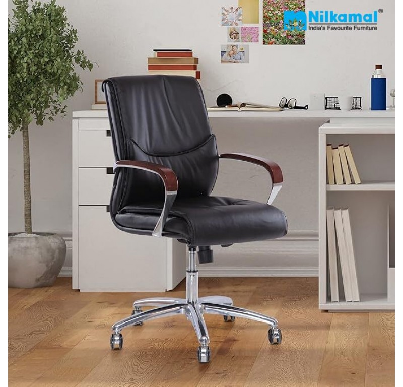 Wouldn't it be nice if your office felt like home? Well then, why don’t you take a look at the Boss Medium back chair by Nilkamal. The very purpose of this office chair is to bring you comfort when and where you need it the most. The high quality aluminium star base is stable and durable. The black colour of this chair goes well with most office furniture and is easy to maintain. This office chair is designed to enhance the ambience of a modern day office sapce and make you more productive. If you find yourself slouching or feeling aches in your back and neck, look no further. The Boss Medium back chair is what you need. Give your office space the upgrade it deserves, shop for this chair online today.