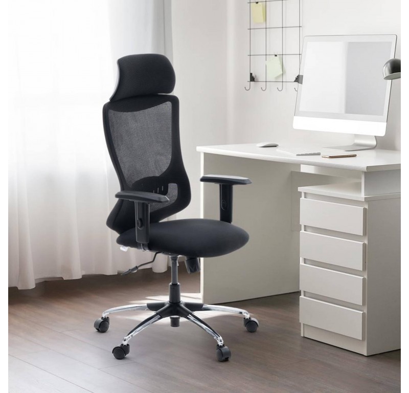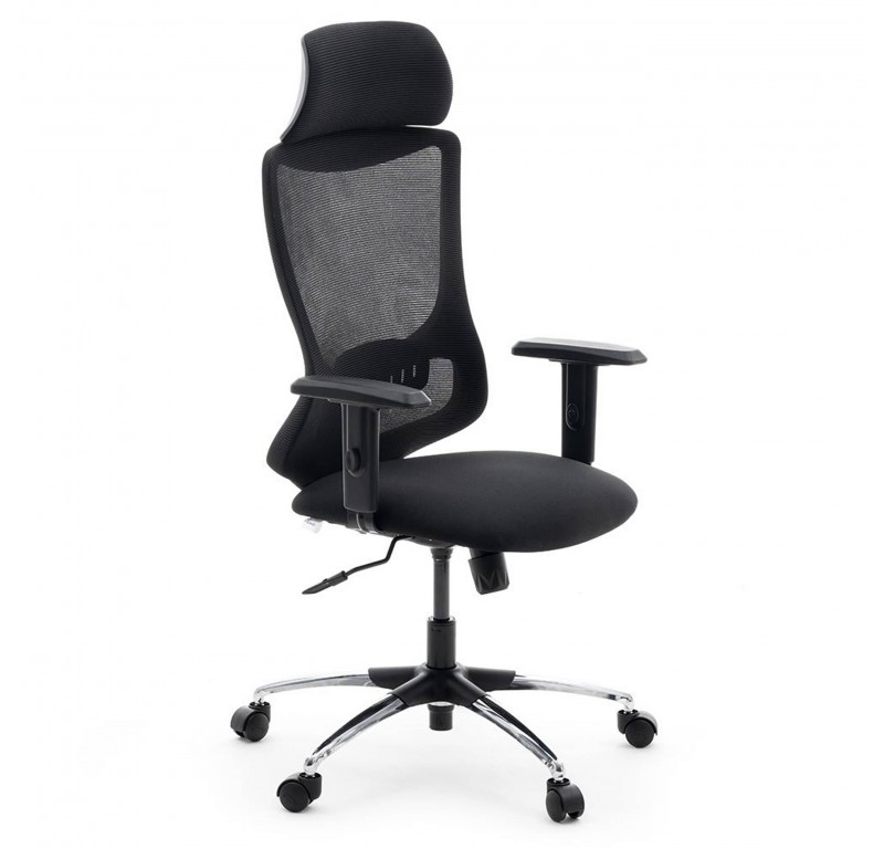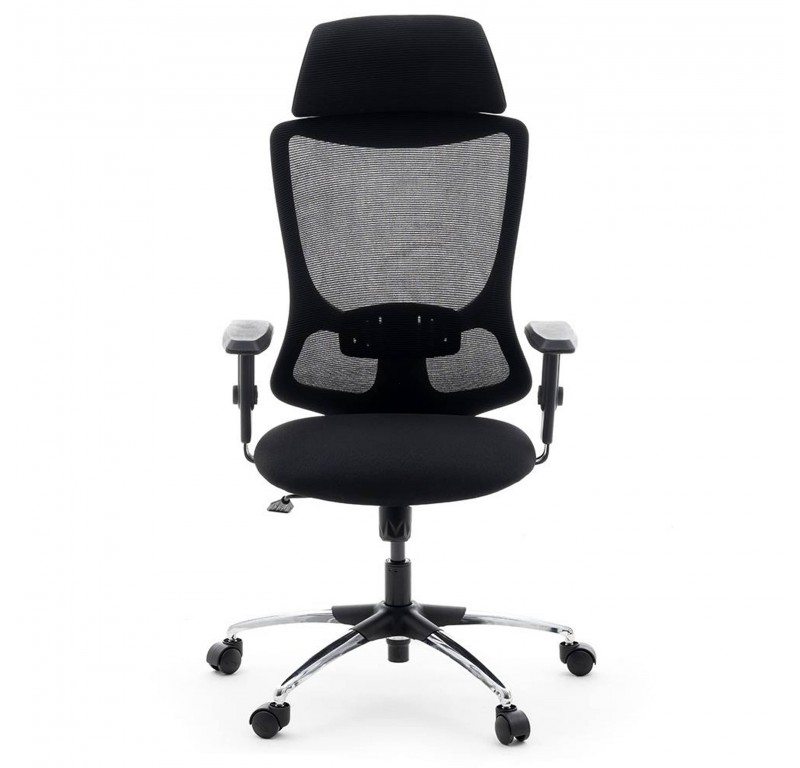 Hutton High Back Chair Fabric - Chrome Base - Black - Single Lock