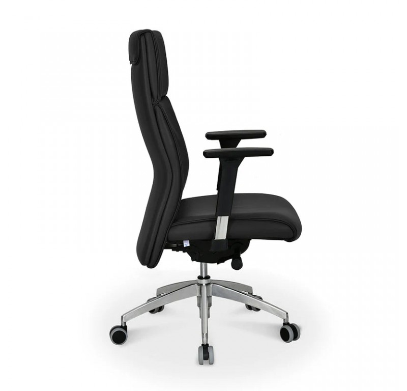 Experience superior comfort and ergonomic support with the Nilkamal High Back Command Chair, upholstered in durable Leatherette. The high-back design with foam seat and back promotes better posture by adding support to the upper back, shoulders, and neck, reducing strain. Equipped with a Premium Synchro mechanism featuring a 4-position locking system, customise your support for extended sitting periods. Its aluminium star base and PU casters ensure stability and smooth mobility, while the chrome-plated cylinder gas lift and housing assembly allow for easy height adjustment. Complete with a 3D armrest featuring a PU top, this chair offers versatile arm support, ideal for long hours of work or relaxation.