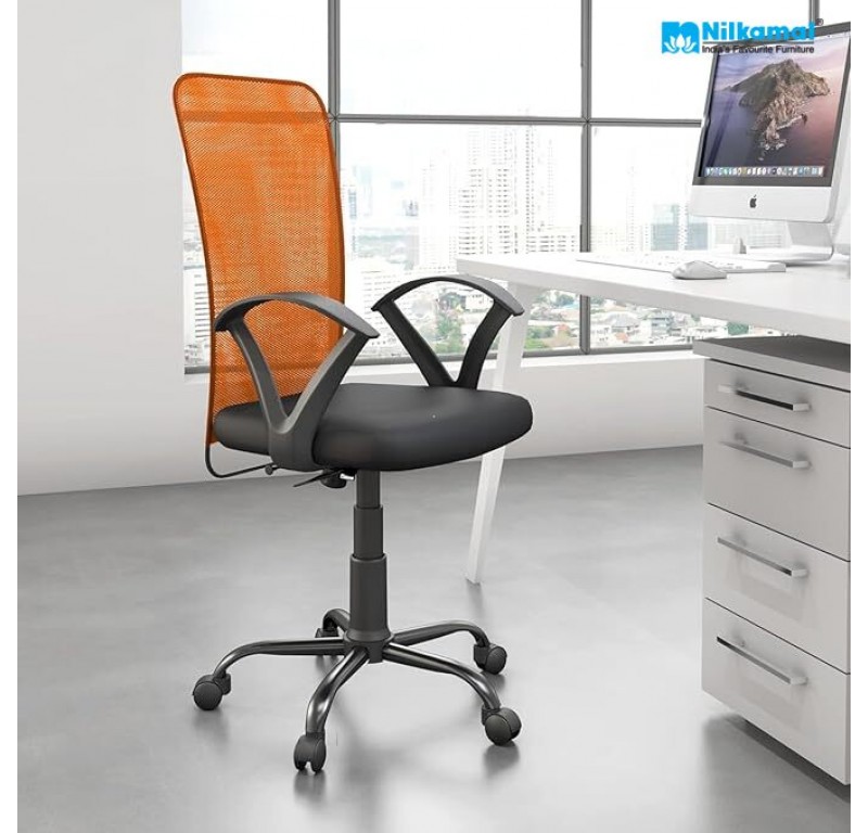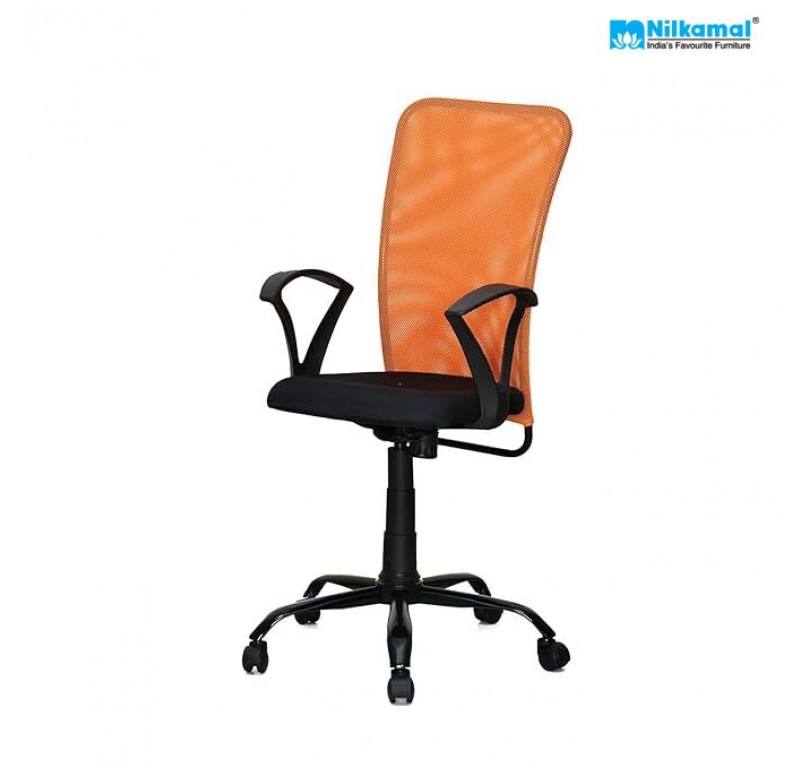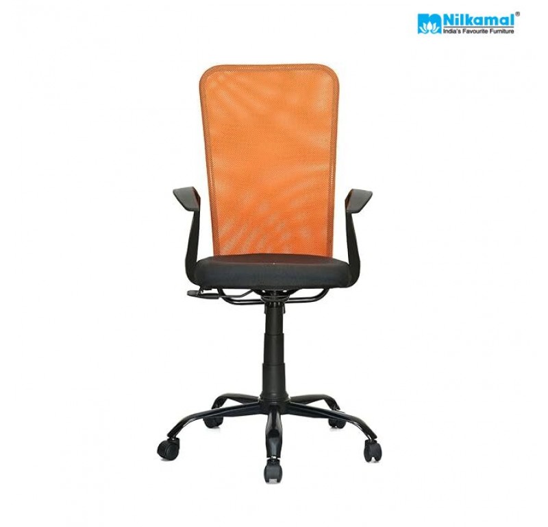 Hanoi Medium Back Chair Mesh Fabric - Orange/Black