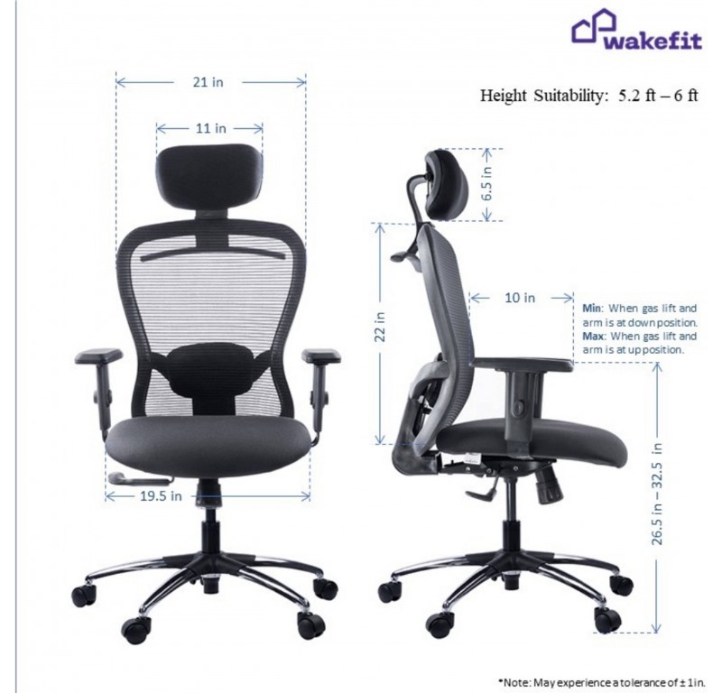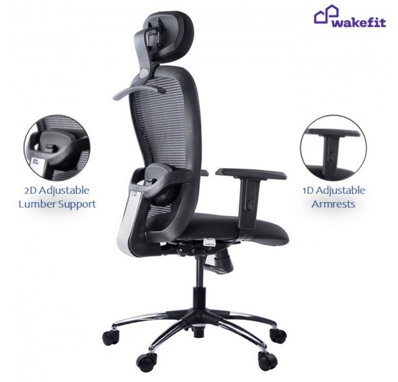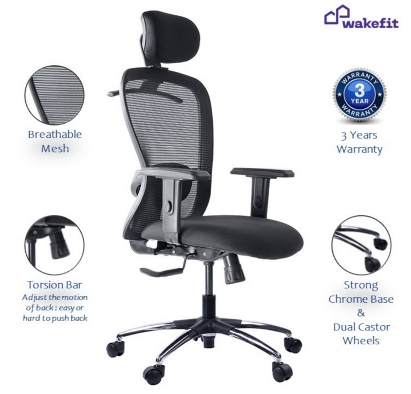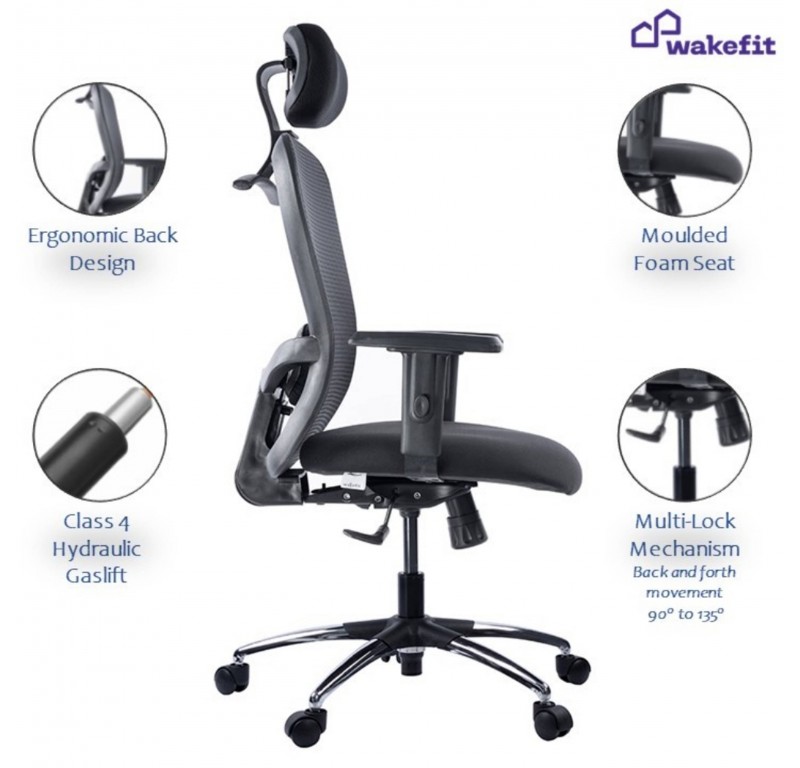 The Wakefit Safari high back office chairs online are perfect for both office and home study spaces. They come with an adjustable backrest with single point locking at an upright position. Shopping for office chairs online can be a hassle if you don’t know what to explore. Our Safari high back office chairs online come with a synchro tilt mechanism that provides coordinated movement of the seat and back to support change of posture for comfortable working throughout the day. The ergonomic backrest of these office chairs online reduces stress on your spine and lower back while the adjustable lumbar support and arms helps you check your posture. The Wakefit Safari high back office chairs online have a mesh headrest which can protect you from annoying neck and shoulder area aches that have become a common occupational hazard. They also have a wide spider base for stability and durability