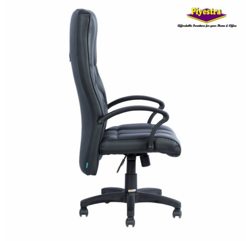 Give your office furniture a stylish upgrade with this leatherette high back chair from Damro. The plush HR foam seat, cushioned armrest, and tall back support with headrest ensure that you work well throughout the day while avoiding back pains and neck strain. Whether you are working on the laptop, looking at files or talking on the phone, this executive high-back chair with adjustable height and free-moving caster wheels will support you a hundred per cent.