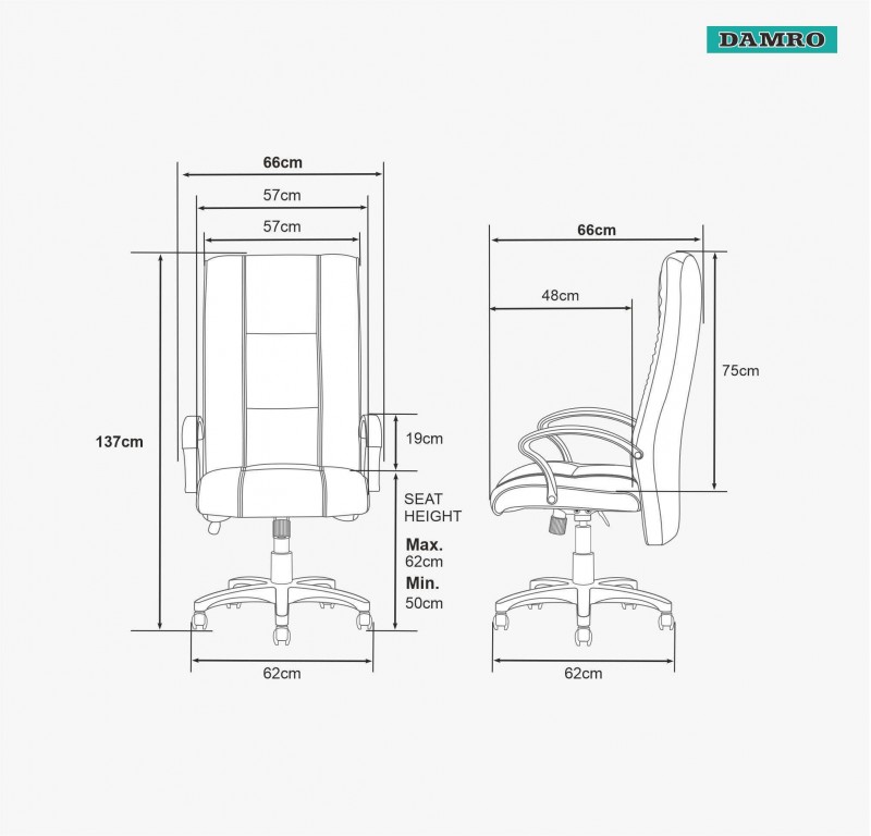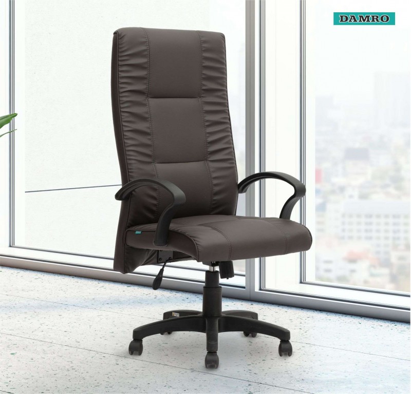 This executive high back chair in a plush leatherette finish offers excellent back support and proper body alignment to get you through a hectic day at the office. You can easily adjust the seat height and tilt using the chair controls at the base and customise it to your preferences. The durable caster wheels fitted to this ergonomic office chair ensure that the chair moves smoothly, even on carpeted floors.