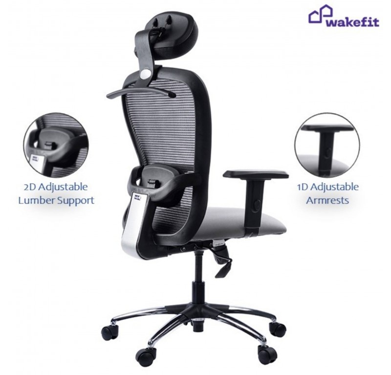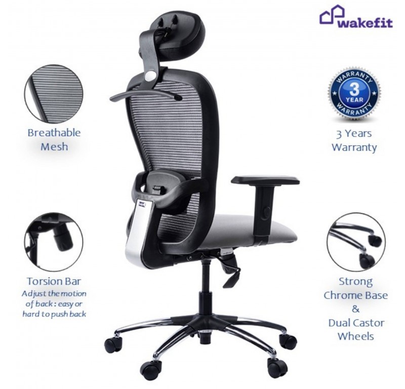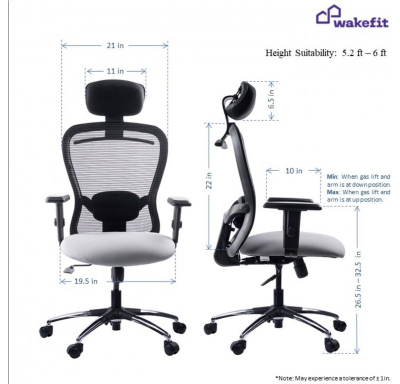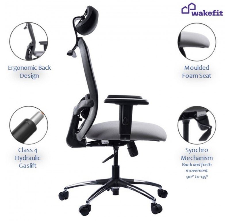 The Wakefit Safari high back office chairs online are perfect for both office and home study spaces. They come with an adjustable backrest with single point locking at an upright position. Shopping for office chairs online can be a hassle if you don’t know what to explore. Our Safari high back office chairs online come with a synchro tilt mechanism that provides coordinated movement of the seat and back to support change of posture for comfortable working throughout the day. The ergonomic backrest of these office chairs online reduces stress on your spine and lower back while the adjustable lumbar support and arms helps you check your posture. The Wakefit Safari high back office chairs online have a mesh headrest which can protect you from annoying neck and shoulder area aches that have become a common occupational hazard. They also have a wide spider base for stability and durability
