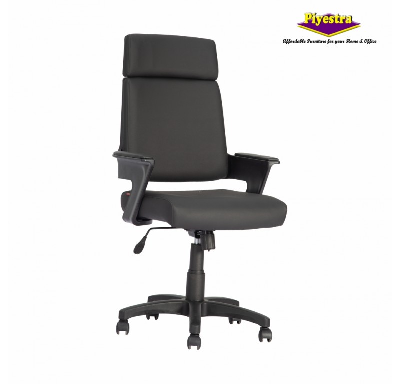 Give your office furniture a stylish upgrade with this leatherette high back chair from Damro. The plush HR foam seat, cushioned armrest, and tall back support with headrest ensure that you work well throughout the day while avoiding back pains and neck strain. Whether you are working on the laptop, looking at files or talking on the phone, this executive high-back chair with adjustable height and free-moving caster wheels will support you a hundred per cent.
