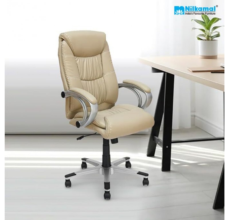 The Nilkamal Libra Office Chair is your ideal ergonomic companion for a productive workspace. Featuring a high-back design and moulded foam back and seat, it offers lumbar support and unmatched comfort during long work hours. Upholstered in sleek PU Leatherette, this chair exudes professionalism and style. Its centre-tilt mechanism, complete with an upright locking feature, lets you recline at ease, while the coated nylon star base and sturdy fixed armrests ensure stability and support. With a 102 kg weight capacity and twin-wheel casters, this chair delivers both comfort and mobility for a seamless work experience.