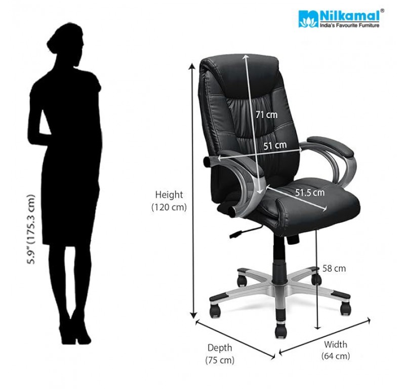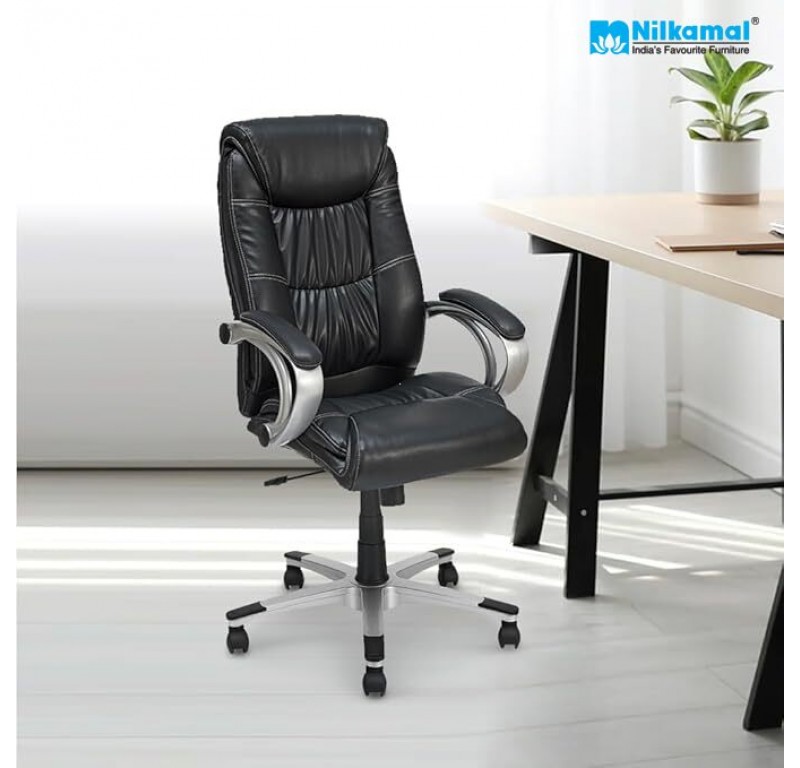 The Nilkamal Libra Office Chair is your ideal ergonomic companion for a productive workspace. Featuring a high-back design and moulded foam back and seat, it offers lumbar support and unmatched comfort during long work hours. Upholstered in sleek PU Leatherette, this chair exudes professionalism and style. Its centre-tilt mechanism, complete with an upright locking feature, lets you recline at ease, while the coated nylon star base and sturdy fixed armrests ensure stability and support. With a 102 kg weight capacity and twin-wheel casters, this chair delivers both comfort and mobility for a seamless work experience.