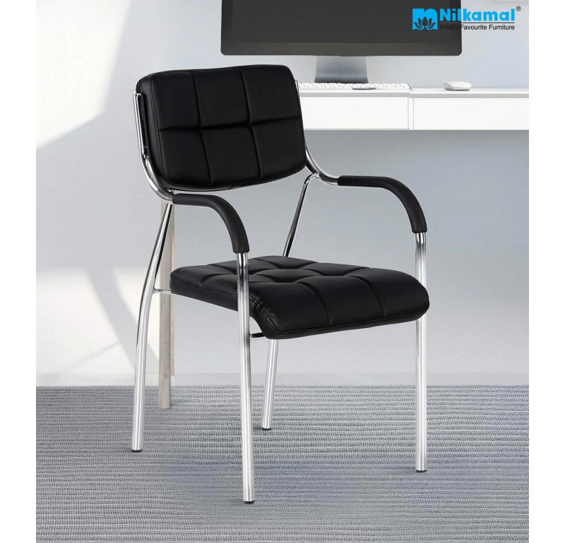 Nilkamal Indus Visitor Chair With Arm Leatherette- Black