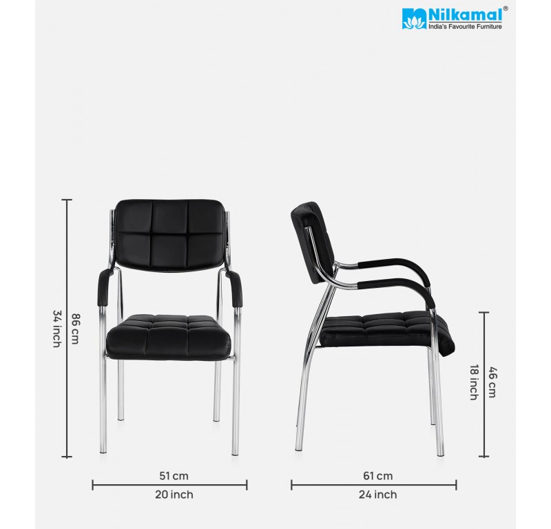 Experience ultimate comfort and support with the Nilkamal Indus Visitor Chair, designed with a PVC upholstered seat and back featuring PU foam for complete relaxation. Fixed polypropylene armrests provide convenient arm support. The chair boasts a chrome-plated Mild Steel frame with a thickness of 1.1 mm, ensuring robustness and stability. This chair's heavy-duty build has an impressive weight-bearing capacity of up to 150 Kg to handle various users with ease. Elevate your office environment with the Nilkamal Indus Visitor Chair, a blend of comfort and durability.