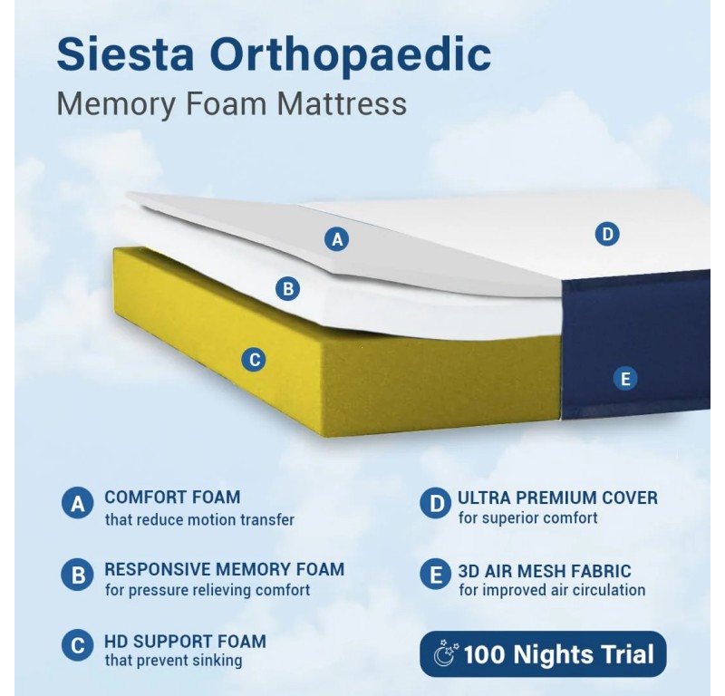 Siesta Memory Foam Single 5inch By Comforto 78x36x5