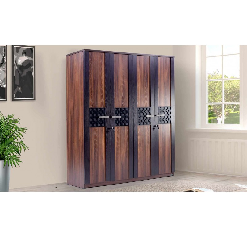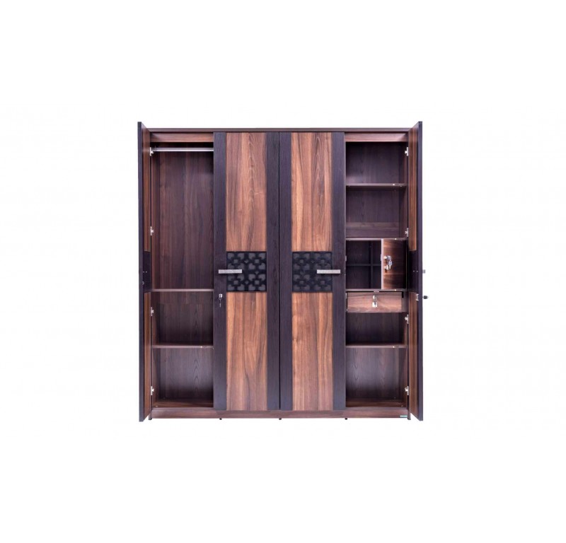 The Carvin 4-door wardrobe in engineered wood will transform the look of your bedroom and take care of all your diverse storage needs. It has an ergonomic design with roomy interiors, divided into organizer drawers, locker drawers, shelves and space to hang your clothes so they don’t get crumpled. The decorative carved panels add to its visual appeal. Order this latest wardrobe design with four doors with confidence!