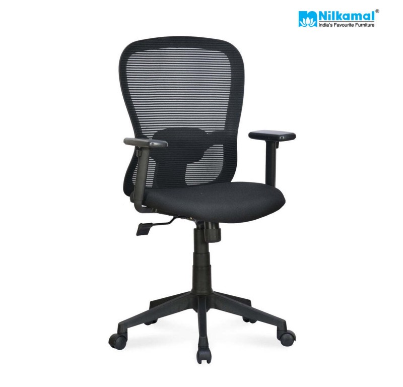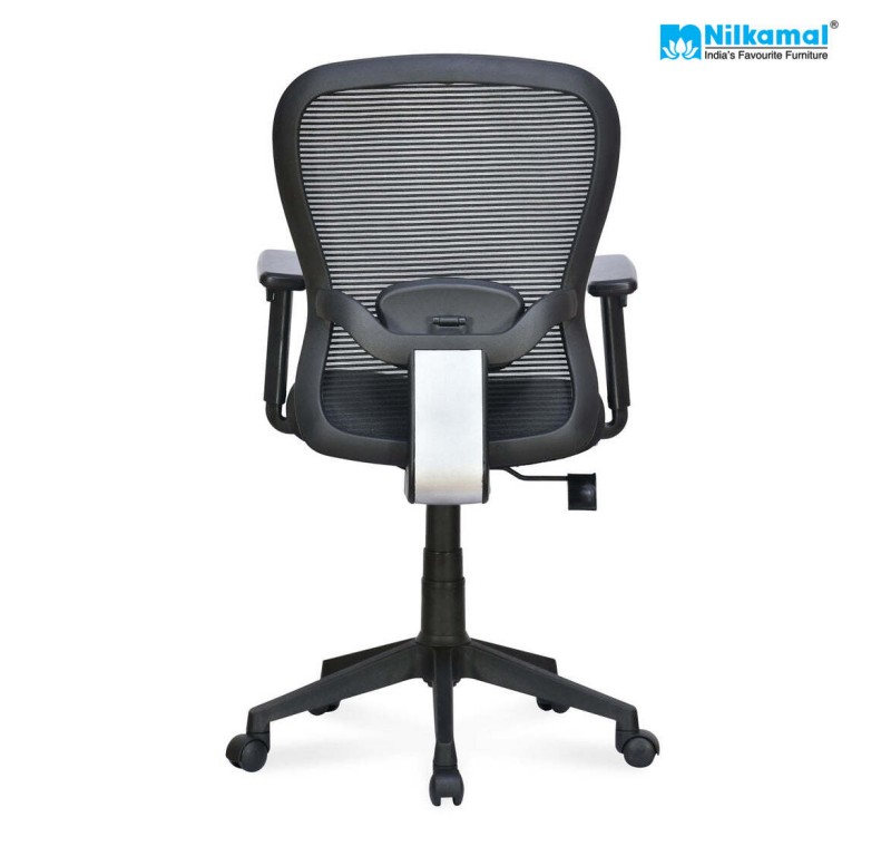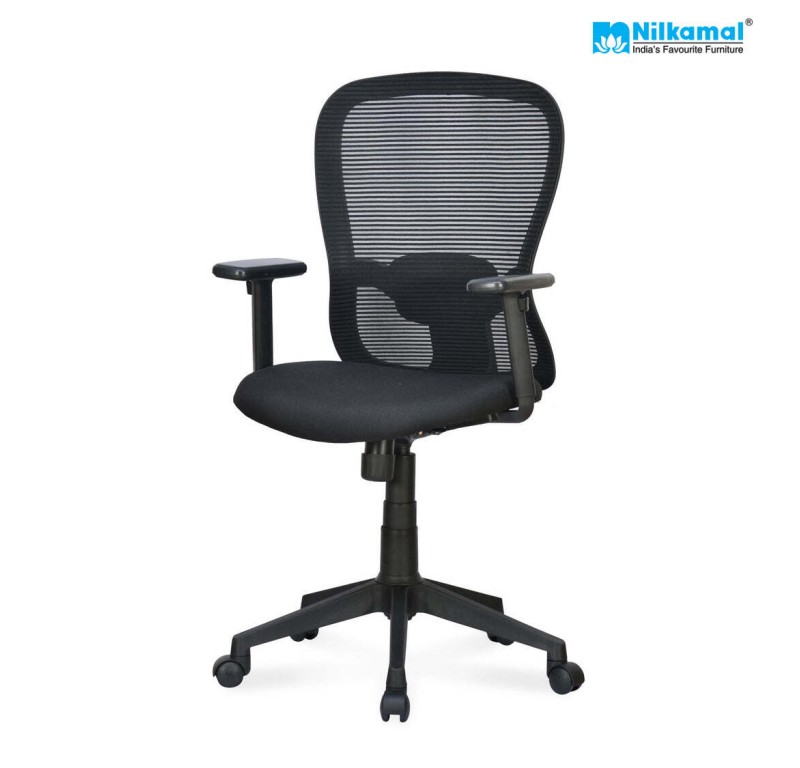 The Nilkamal Alba Medium-Back Office Chair is a perfect blend of comfort and functionality. Its ergonomic design ensures maximum comfort, providing optimal support for long hours of sitting. The chair's centre-tilt mechanism allows smooth tilting and reclining motions, helping you find the most comfortable position. With a sturdy nylon star base, the chair offers stability and durability for everyday use. The Medium-back design provides ample lumbar support, promoting good posture and reducing back strain. With its sleek black colour, the Alba Medium-Back Office Chair adds a touch of elegance to any office or home environment, making it a perfect choice for both style and comfort.