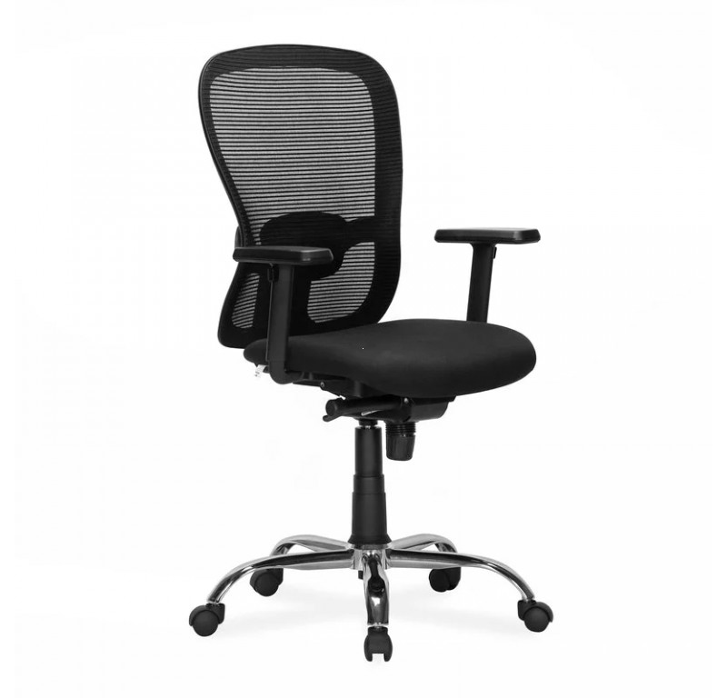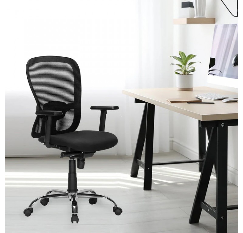 The Nilkamal Alba Mid-Back Office Chair offers a perfect balance of comfort and style. Designed with ergonomics in mind, it ensures maximum comfort during long hours of sitting. The knee-tilt mechanism allows for smooth tilting and reclining, enhancing relaxation. Its MS Chrome Star Base provides stability and durability, adding an elegant touch to any space. The mid-back design offers optimal lumbar support, promoting proper posture and reducing back strain. With a breathable mesh back, the chair allows for proper air circulation, keeping you cool and comfortable. Its sleek black colour adds a touch of sophistication, making the Nilkamal Alba Mid-Back Office Chair a perfect choice for both comfort and style.