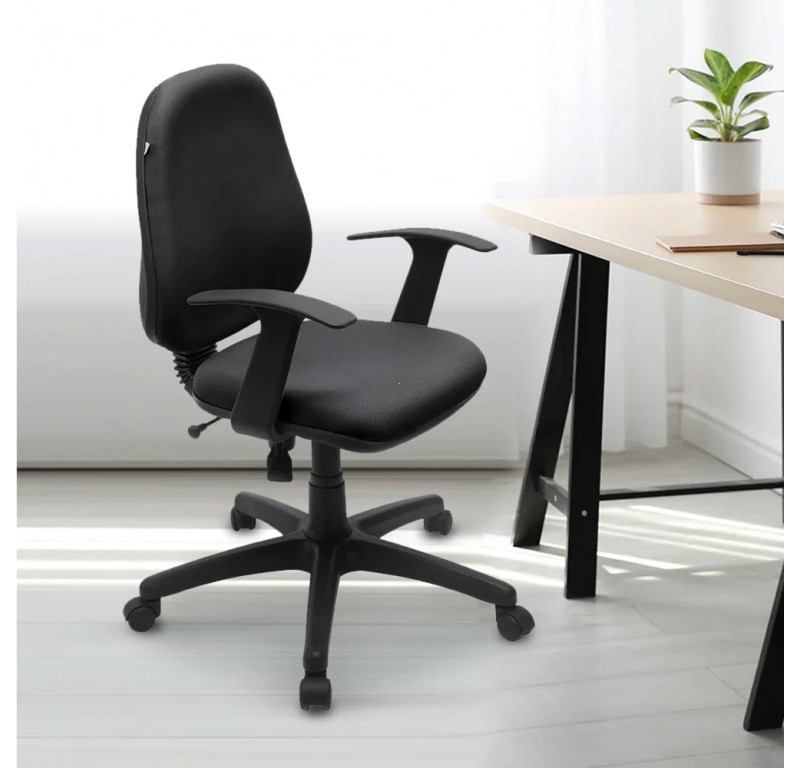 Is your stiff office chair giving you a backache? If so, you need the Nilkamal Agile Medium Back Office Chair. This plush chair has a Medium-back design that supports your spine's natural curve and prompts your to sit straight. To de-stress your back, the Agile features a pushback mechanism that adjusts the backrest to prevent backache. Its moulded foam seat and back with soft fabric upholstery elevates your sitting experience. At the sides, fixed polypropylene armrests provide much-needed support for the arms. And a 90-mm-stroke BIFMA standard gas lift allows you to modify the height using the lever below. The chair has a robust nylon star base with twin wheel castors to keep it stable and allow easy movement. The Agile Office Chair comes in a striking black shade with a sophisticated design that works in any setting and adds character to your setup.